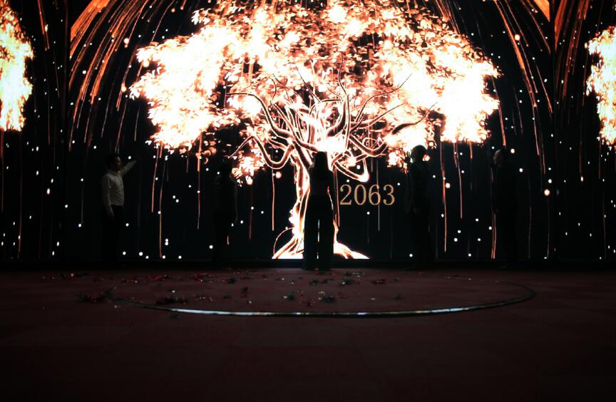 晚會(huì)的最后,以陳姣姣為首的集團(tuán)五名領(lǐng)導(dǎo)走上臺(tái),代表董事長(zhǎng)開啟了“希望之樹”。那棵象征著大莊園的“希望之樹”從1982年開始成長(zhǎng),一直長(zhǎng)到了2019、2029、2059、2099……